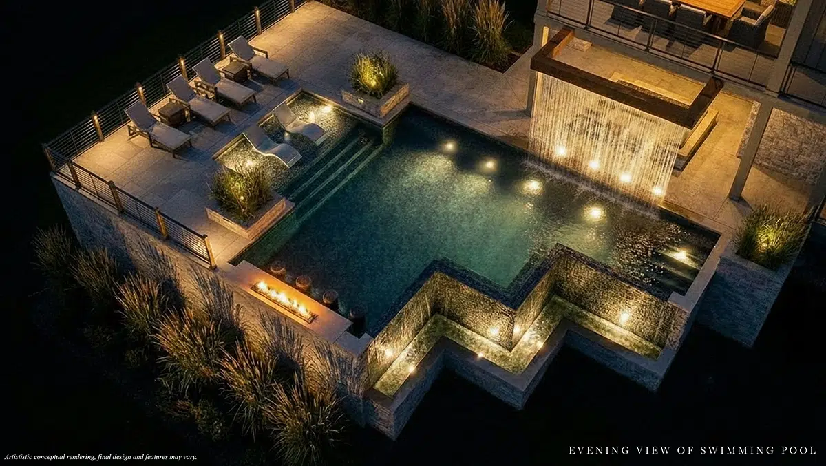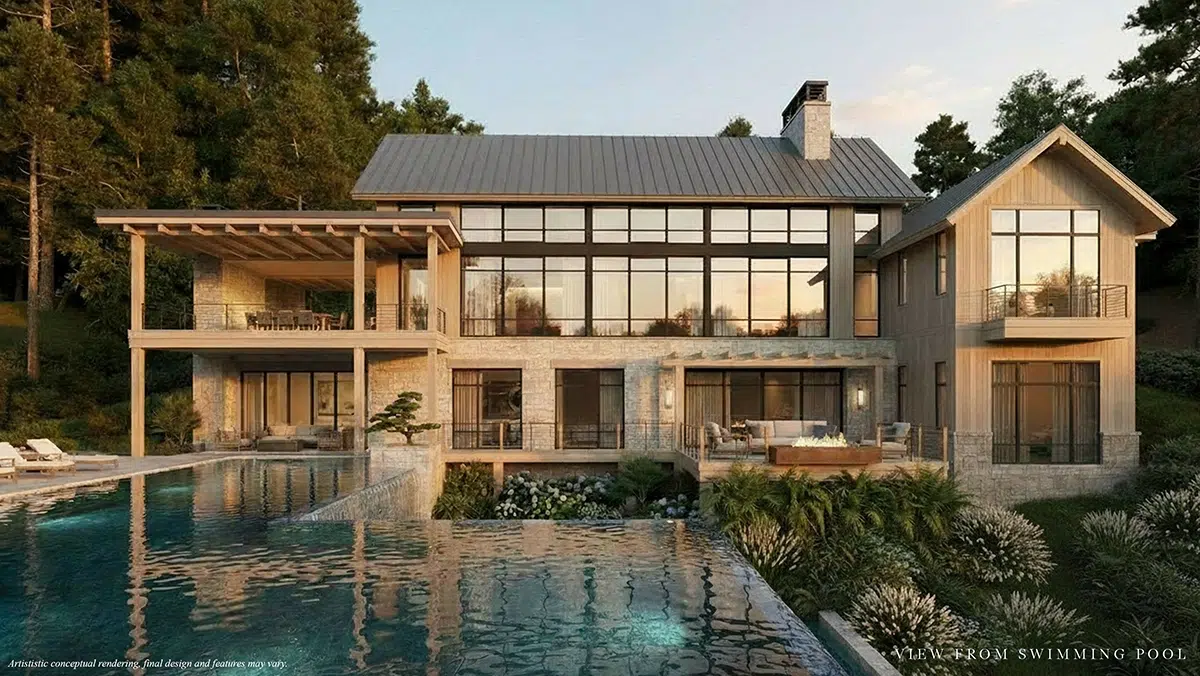 Outdoor living is equally compelling, with a dramatic lit terrace enhanced by integrated airflow systems for year-round comfort. A one-of-a-kind custom designed and crafted Pebbletec Gunite pool by legendary builder Keowee Pools, featuring a spa, tanning ledge, wet wall, shower curtain and infinity edge, bekons one to immerse themselves in the location’s scenic splendor. Every element of this home is thoughtfully orchestrated to deliver a cohesive, immerse, and elevated living experience — where luxury, entertainment and nature exist in perfect balance.